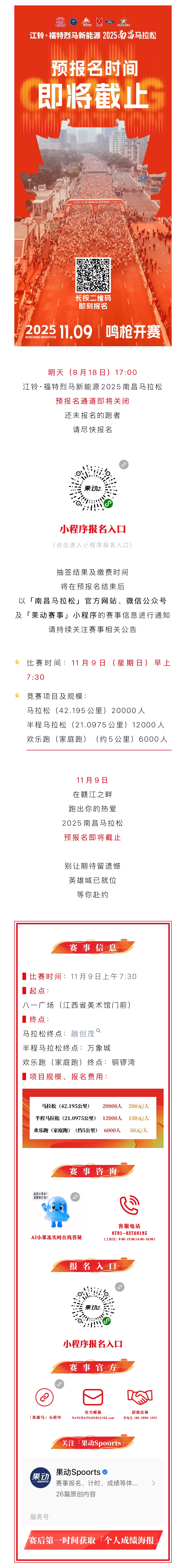 温馨提示|2025南昌马拉松预报名将于明日17:00截止!
